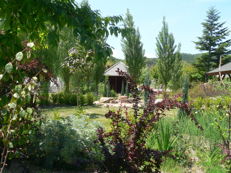 ショップホルティのまわりには 4種類の英国式庭園が現れます。コッテージガーデン、シュラブガーデン、宿根草メインのフローラルポイント、そしてそれらをウッドランドガーデンがチェーンのように繋ぎます。
